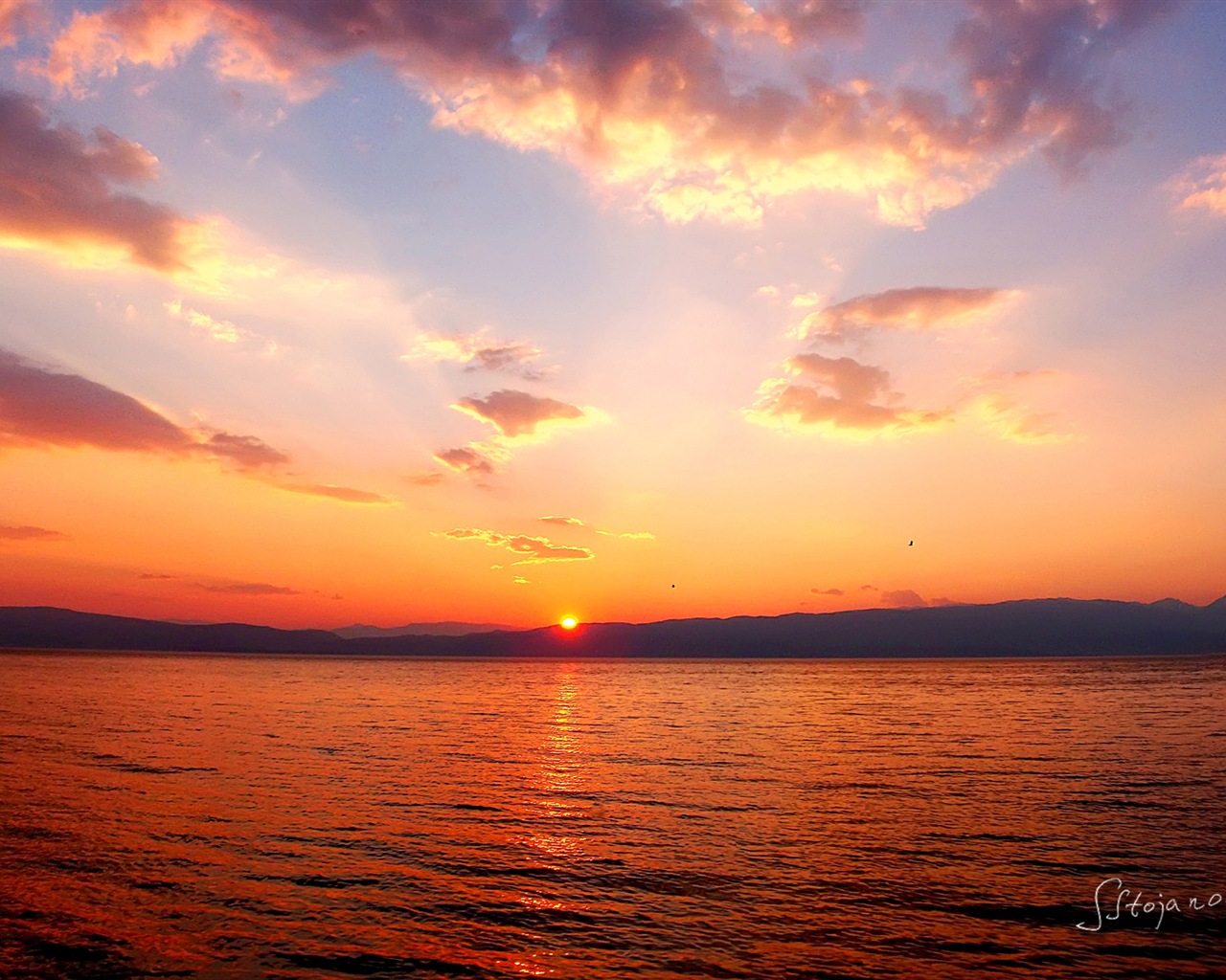 日落之後,奧赫里德湖,Windows 8 主題高清壁紙 #9 - 1280x1024