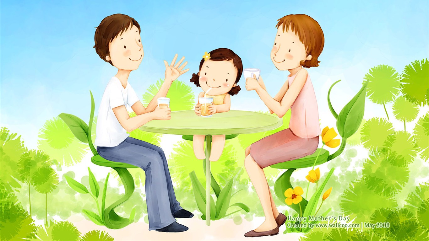 母親節主題韓國插畫壁紙 #15 - 1366x768