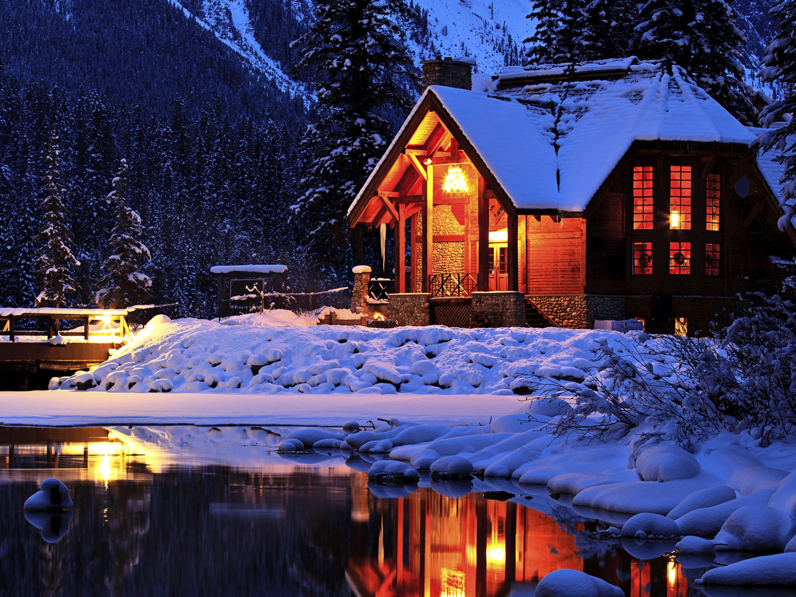 Windows 8 主題高清壁紙:冬季雪的夜景 #1 - 1600x1200