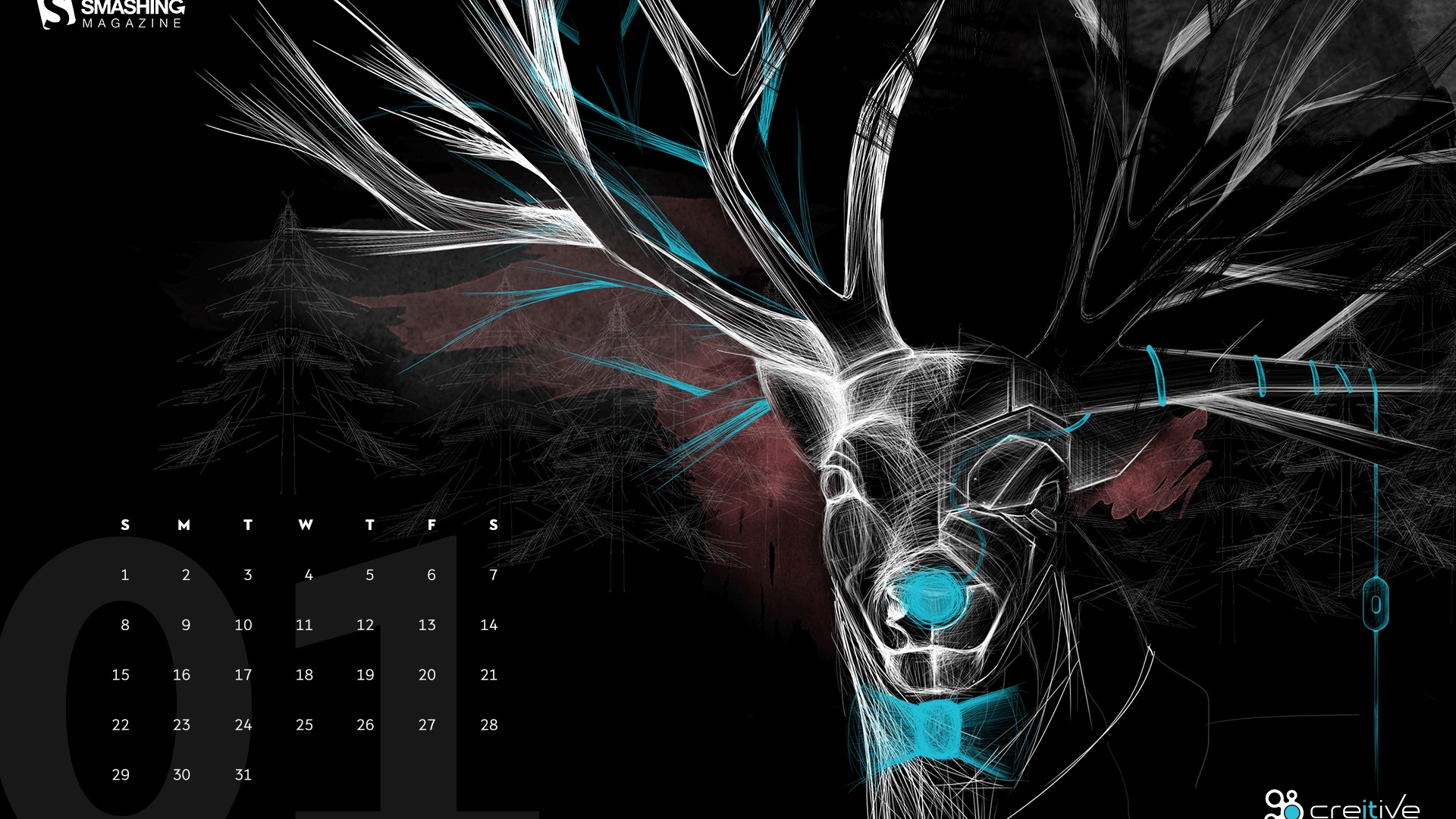 2017年1月 月曆壁紙(二) #13 - 1920x1080