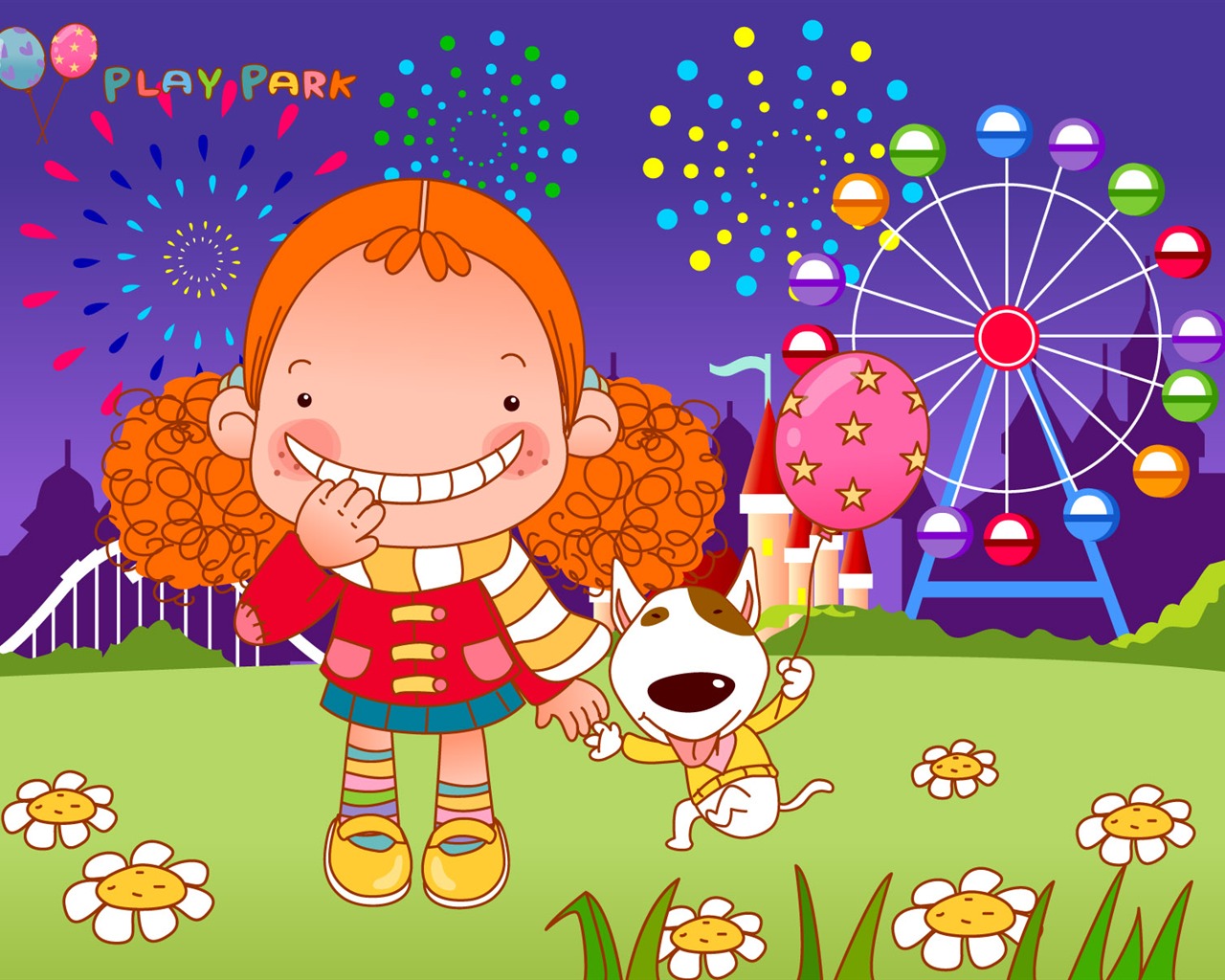 Vector dívka a pes tapety na plochu #10 - 1280x1024